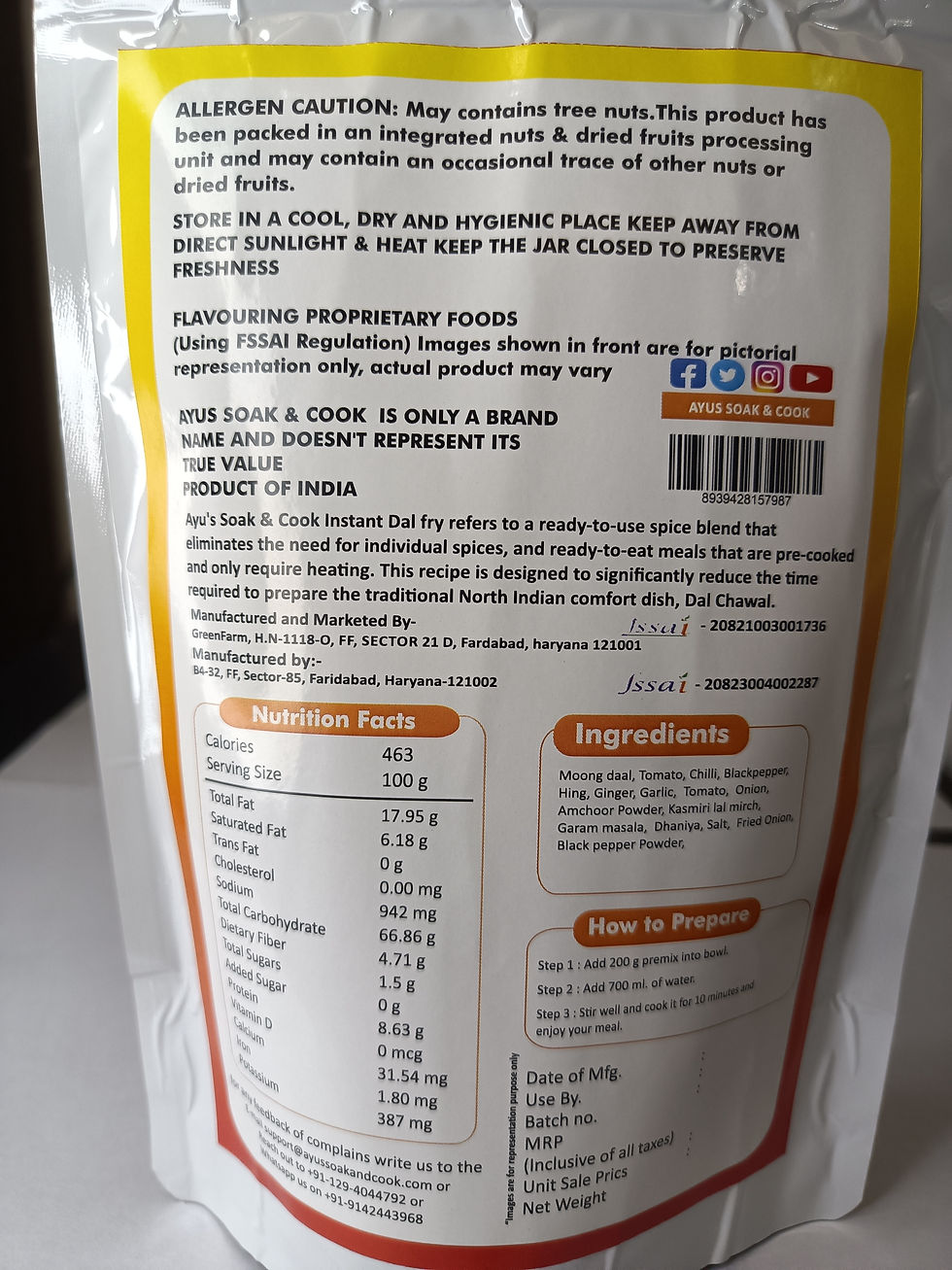 Ayus Soak And Cook is a food processing company in Faridabad, Haryana, that manufactures and sells dehydrated vegetable products, spices, and ready-to-cook items, available online and in-store through their Grocery Store